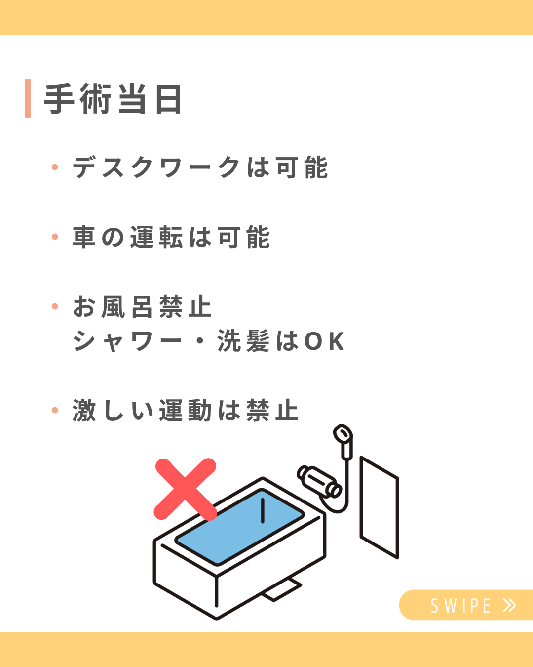 *お風呂禁止、シャワー・洗髪はOK