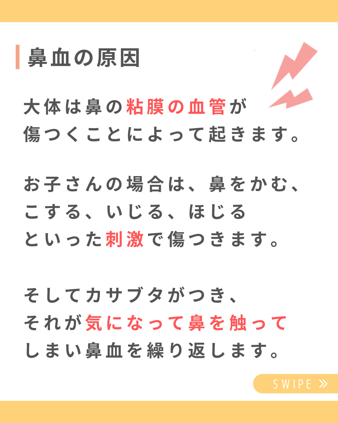 それが気になった鼻を触ってしまい鼻血を繰り返します。